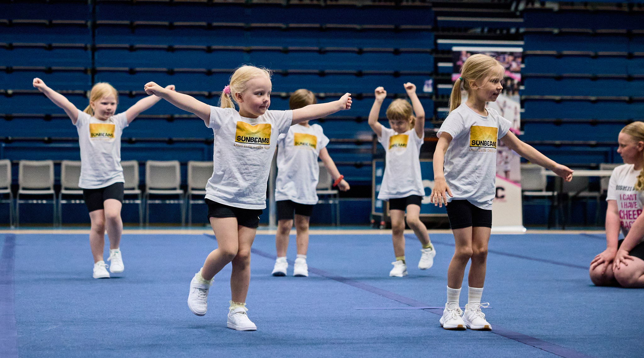 Pienten lasten cheer-kerhossa liikutaan leikkien ja liikuntaan tutustuen, erilaisia liikkumistaitoja oppien. Kerhossa keskitytään harjoittelemaan perusliikuntataitoja kuten juokseminen, hyppääminen, heittäminen ja kiinniottaminen, mutta myös tasapaino- ja muita liikkumistaitoja. Harjoittelu tapahtuu leikin kautta ja kerhossa opitaan ikäryhmälle sopivalla tavalla cheerleadingissä tärkeitä kehonhallintataitoja.